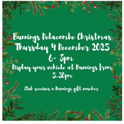 WHAT: Chance to Show off your Holden WHERE: Bunnings Delacombe WHEN: Thursday 4th December TIME: 5.30pm set up Please let Paul Irvin know if you are attending 0419 524 607